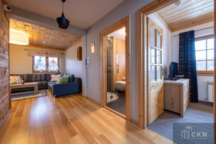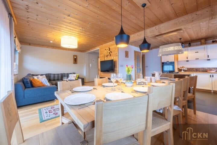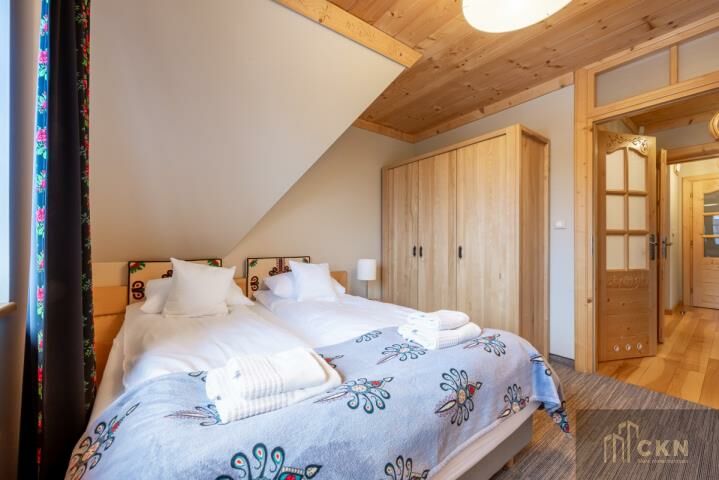 Willa sprzedawana jest z pełnym wyposażeniem drewnianymi meblami, elementami ręcznie rzeźbionymi, haftowanymi tkaninami, sprzętem RTV i AGD. Każdy pokój ma indywidualny charakter, zachowując spójny, podhalański klimat w nowoczesnym wydaniu. Otoczenie domu zapewnia ciszę, piękne widoki oraz bezpośredni dostęp do tras spacerowych, szlaków i okolicznych wierchów. Blisko stoki narciarskie, termy w Bukowinie i Białce Tatrzańskiej oraz liczne atrakcje Podhala.